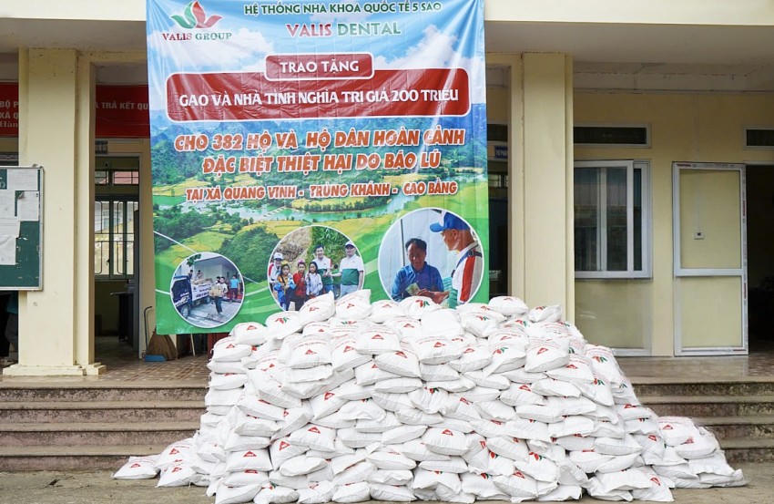 Nha Khoa Valis Luxury ủng hộ 5 tấn gạo cho người dân bị ảnh hưởng mưa lũ và xây nhà tình thương trị giá 200 triệu đồng cho hộ đặc biệt khó khăn tại Xã Quang Vinh, Huyện Trùng Khánh, Tỉnh Cao Bằng.