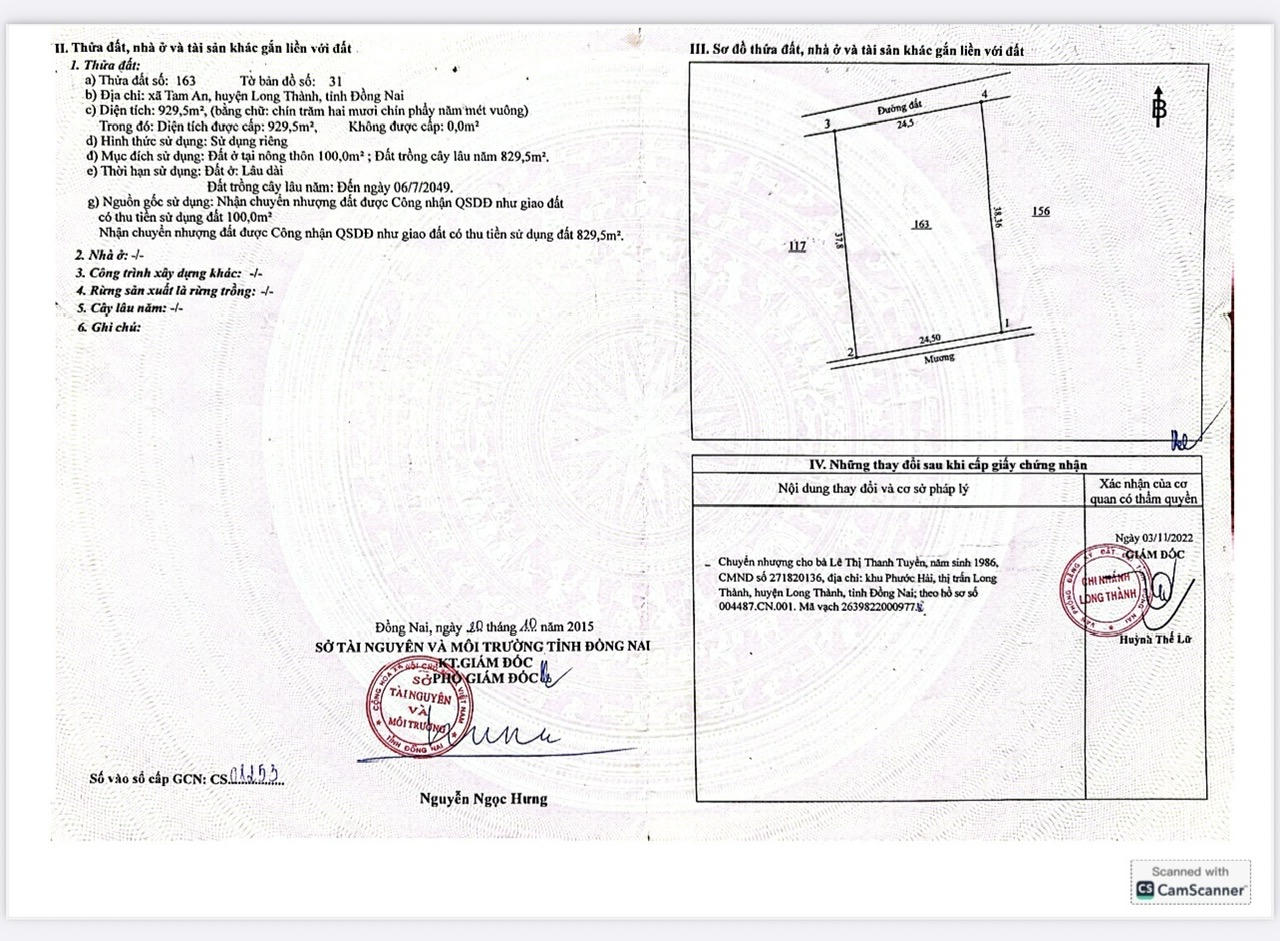 Bà Lê Thị Thanh Tuyền, sinh năm 1986, trú tại khu phố Phước Hải, xã Long Thành (tỉnh Đồng Nai), cho biết năm 2022, bà nhận chuyển nhượng thửa đất số 163, tờ bản đồ số 31 tại xã Tam An, huyện Long Thành cũ, diện tích 929,5m².