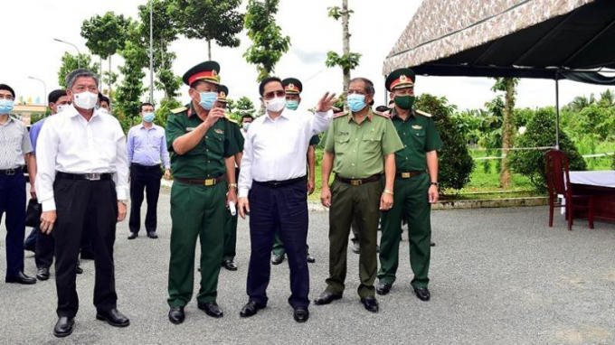 Thủ tướng Phạm Minh Chính thị sát khu cách ly tập trung phòng chống COVID-19 tại Trung đoàn 926 thuộc Bộ Chỉ huy Quân sự tỉnh Trà Vinh, ngày 22/5/2021. Ảnh: VGP/Nhật Bắc