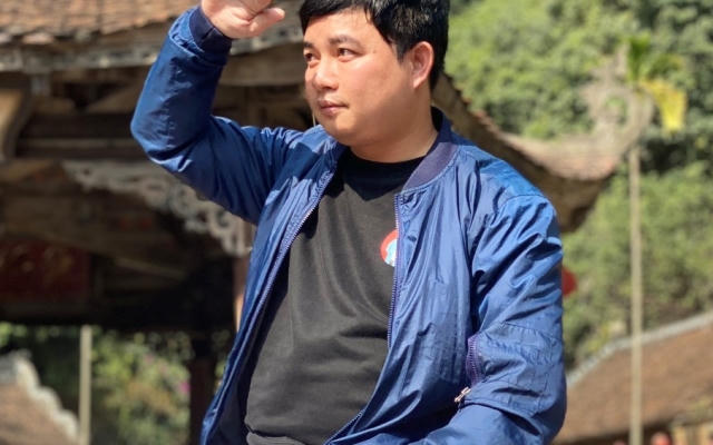 Đạo diễn Trịnh Xuân Hảo phát biểu tại họp báo .