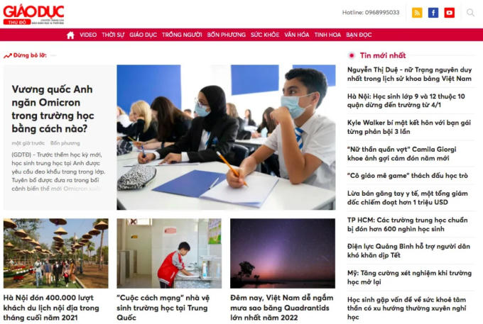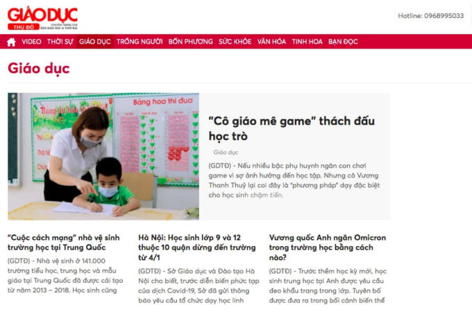 Giao diện của Chuyên trang Giáo dục thủ đô.