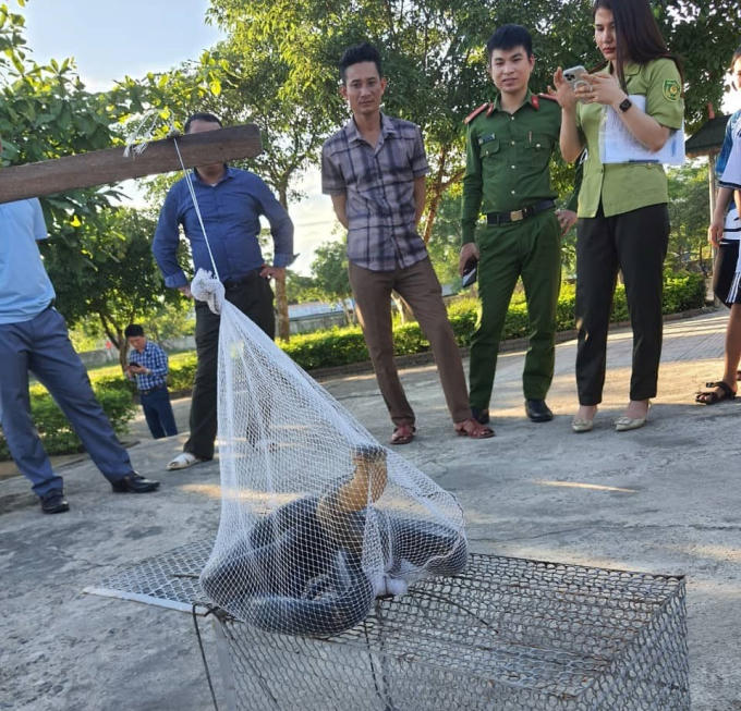 Trước đó, vào sáng 11/5, một số giáo viên Trường THCS Kỳ Sơn, huyện Kỳ Anh, Hà Tĩnh phát hiện cá thể rắn hổ mang chúa bị mắc vào lưới vây xung quanh sân tập thể dục của nhà trường. Để đảm bảo an toàn các giáo viên đã bắt nhốt lại. Cá thể rắn hổ mang chúa này dài hơn 3m, nặng 2,6 kg.