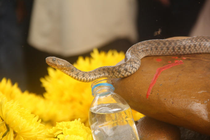 Sau khi xác nhận “rắn thần” chỉ là con rắn nước bình thường, lực lượng chức năng đã thả rắn về tự nhiên.