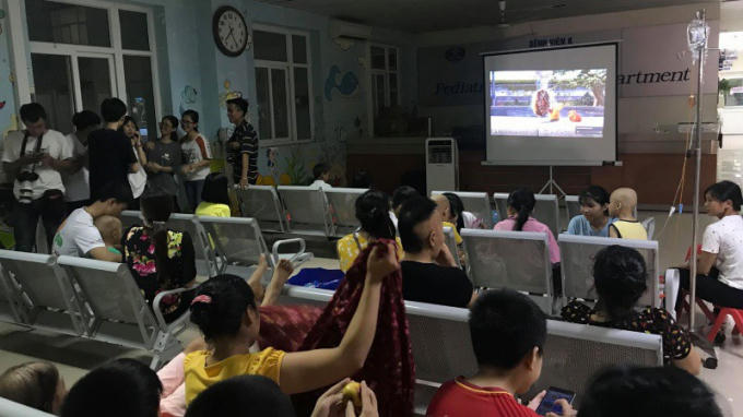 Bởi tấm màn hình rộng lớn chiếu phim hoạt hình, trò chơi trẻ em, ca nhạc thiếu nhi vào tối thứ 4 hàng tuần lúc nào cũng là niềm háo hức, mong chờ trong những chuỗi ngày điều trị đằng đẵng tại Bệnh viện K. Tiếng cười ríu rít của chúng cứ nối đuôi nhau theo hàng ghế sảnh bệnh viện… Thế nhưng, đằng sau mỗi cánh cổng Bệnh viện K ấy lại là những cảnh đời trẻ thơ gắn liền với bệnh tật và sự bất lực với hoàn cảnh.