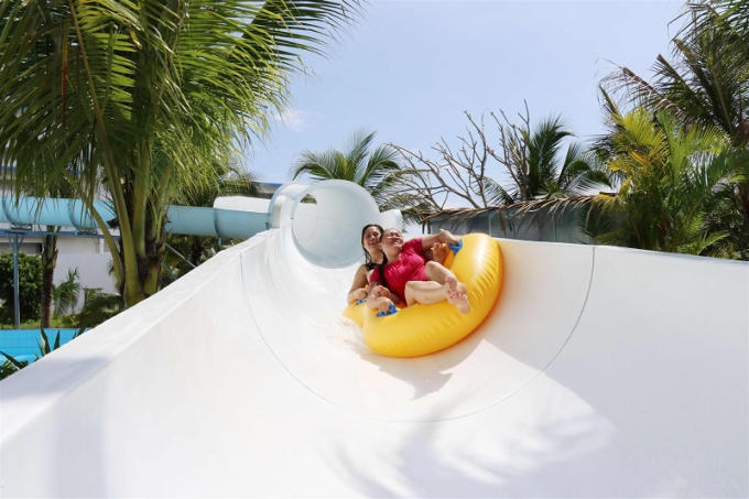 Người lớn thỏa sức ngụp lặn trong làn nước trong veo của 2 hồ bơi nước ngọt Beach Pool rộng 880 m2 và Aqual Pool rộng 700 m2. Trẻ em nô đùa không biết chán tại công viên nước tiêu chuẩn quốc tế với nhiều trò chơi mạo hiểm, hay khu vui chơi ngoài trời rộng lớn. Du khách cao tuổi thảnh thơi dạo bước ven những hàng dừa yên ả, cảm nhận từng bước chân chạm trên cát mịn, thả trôi theo từng đợt sóng biển xô bờ.