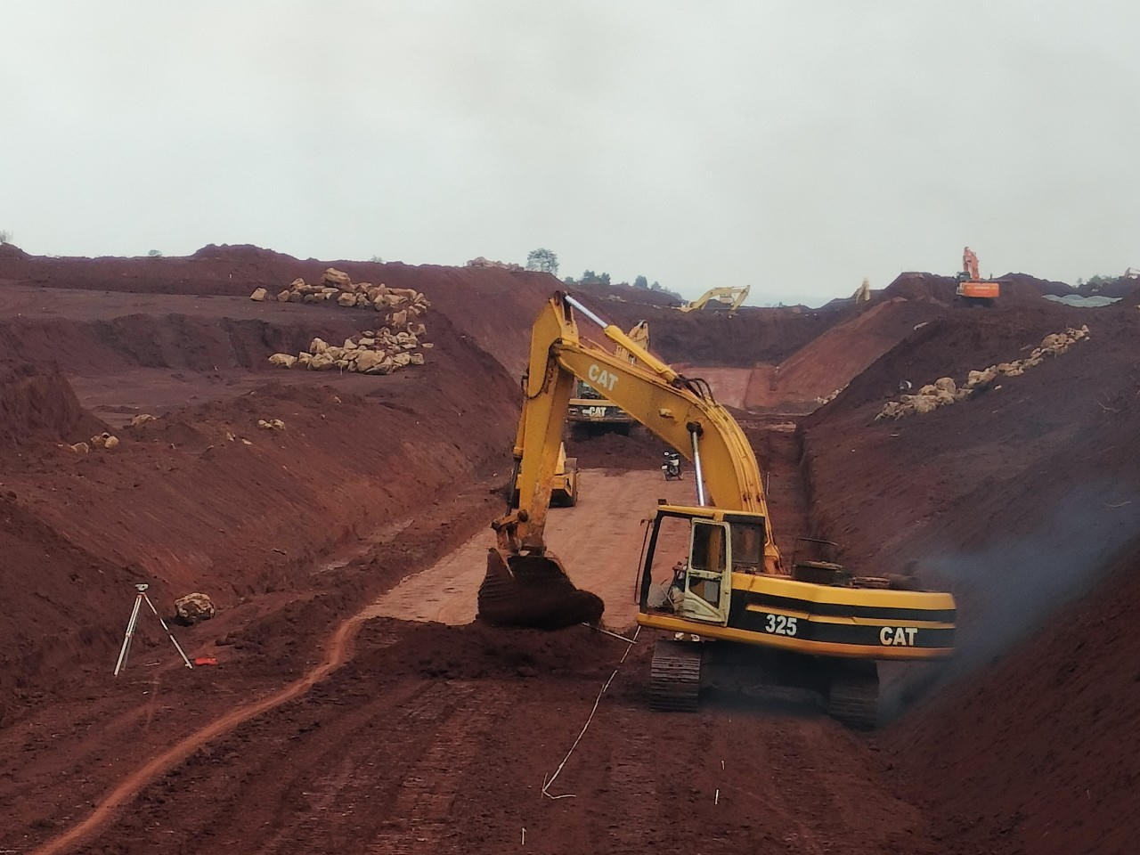 Xe cẩu nỗ lực đào đất tạo mặt bằng