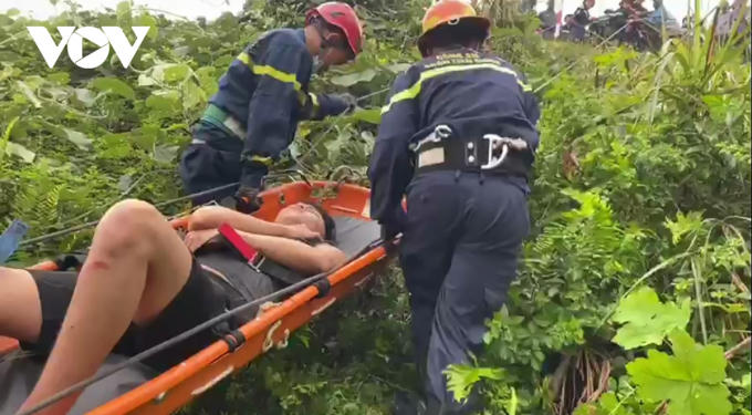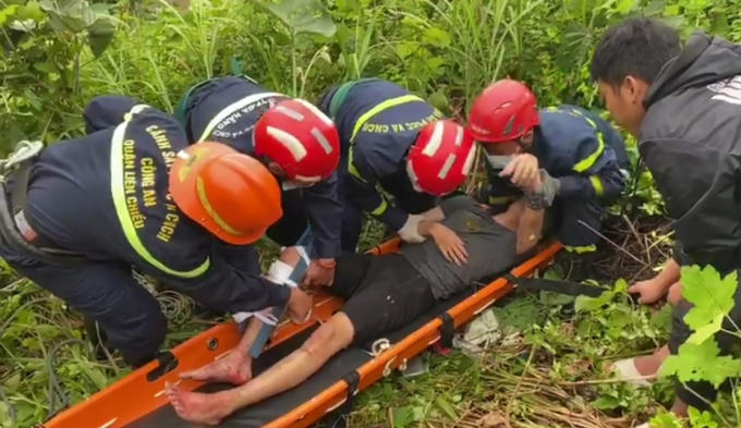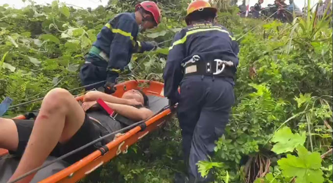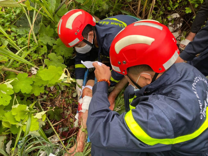 Phát hiện nạn nhân bị gãy chân, lực lượng cứu nạn cứu hộ xuống vực, tiến hành sơ cứu, sau đó dùng cáng đưa nạn nhân lên an toàn, kịp thời đưa vào cơ sở y tế.