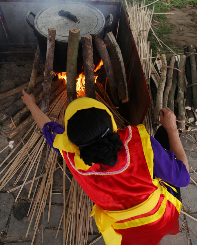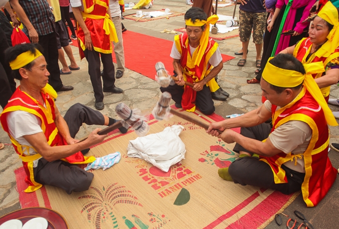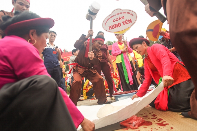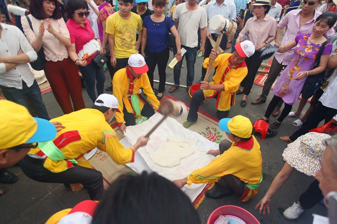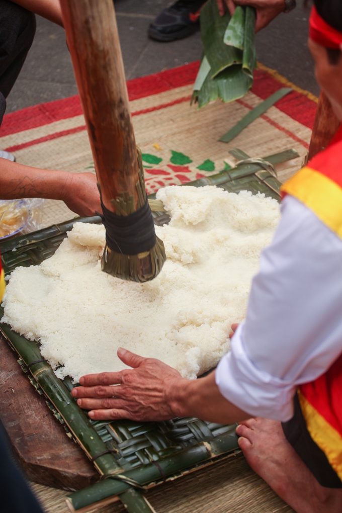 | Công đoạn giã nhuyễn xôi làm bánh giầy |