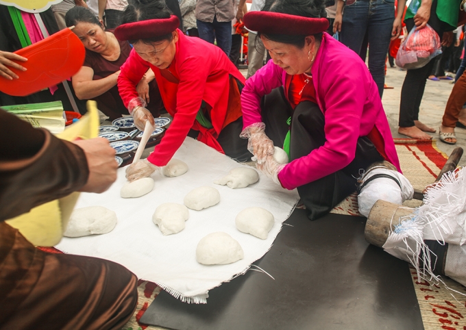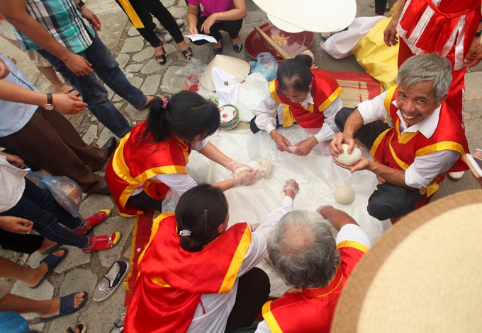 | Các nghệ nhân rất nhanh chóng tạo hình sao cho bánh giầy của đội mình được đẹp nhất |