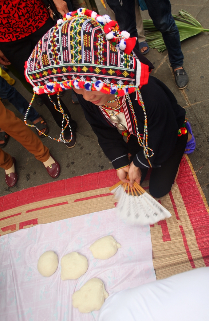 | Xôi khi giã xong phải được quạt nguội mới có thể tạo hình |