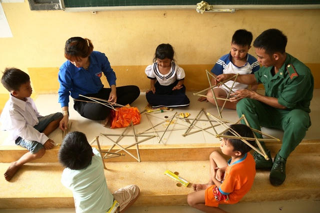 Các chiến sĩ, đoàn viên thanh niên cùng chung tay mang Tết Trung thu đến các em học sinh ở các trường biên giới Đồng Tháp