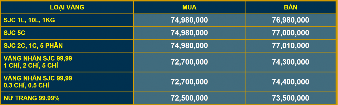 Đây là ngày thứ tư liên tiếp Ngân hàng Nhà nước Việt Nam giữ mức giá bán ra ở mức 75,98 triệu đồng/lượng.