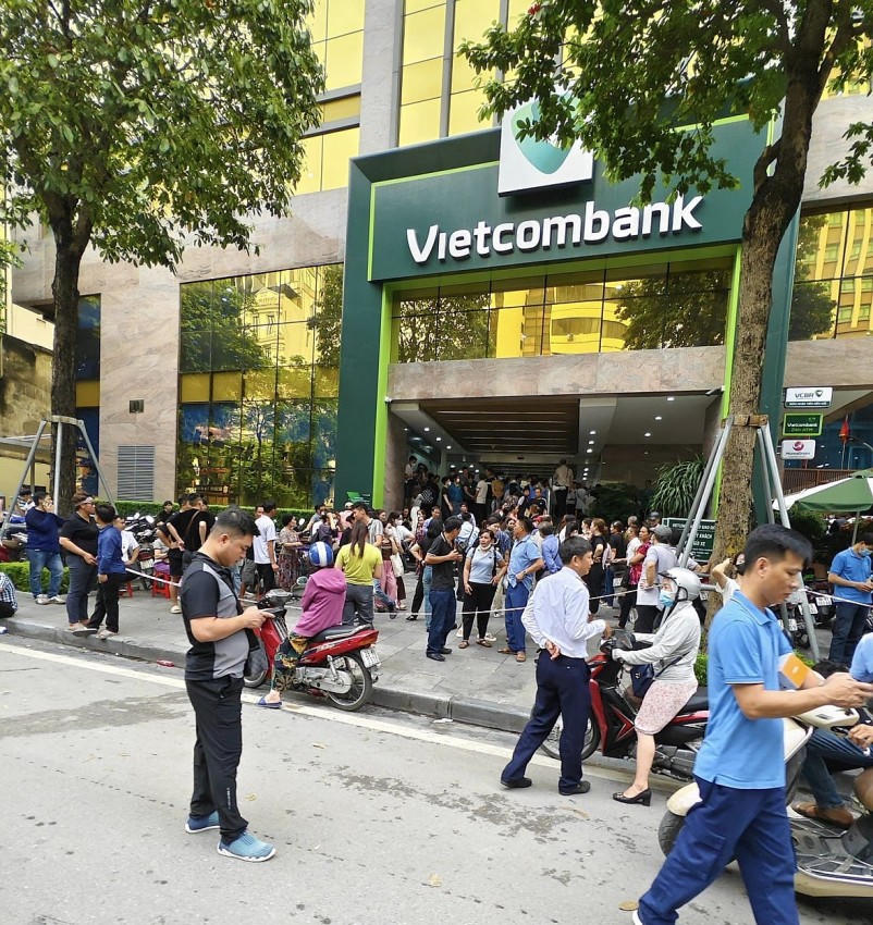 Theo ghi nhận vào ngày 11/6, các điểm bán vàng thuộc các ngân hàng thương mại Nhà nước tại Hà Nội xuất hiện tình trạng xếp hàng dày đặc, gây nên cảnh tắc nghẽn trước cửa các chi nhánh.