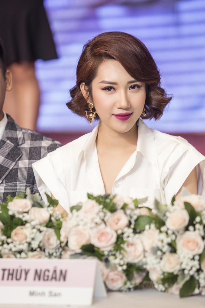 Chiều 3/4, diễn viên Thuý Ngân tham gia buổi họp báo ra mắt dự án webdrama "Bệnh viện thần ái". Người đẹp diện trang phục màu trắng cá tính, kết hợp mái tóc ngắn và màu son tôn lên vẻ cá tính cho bản thân.