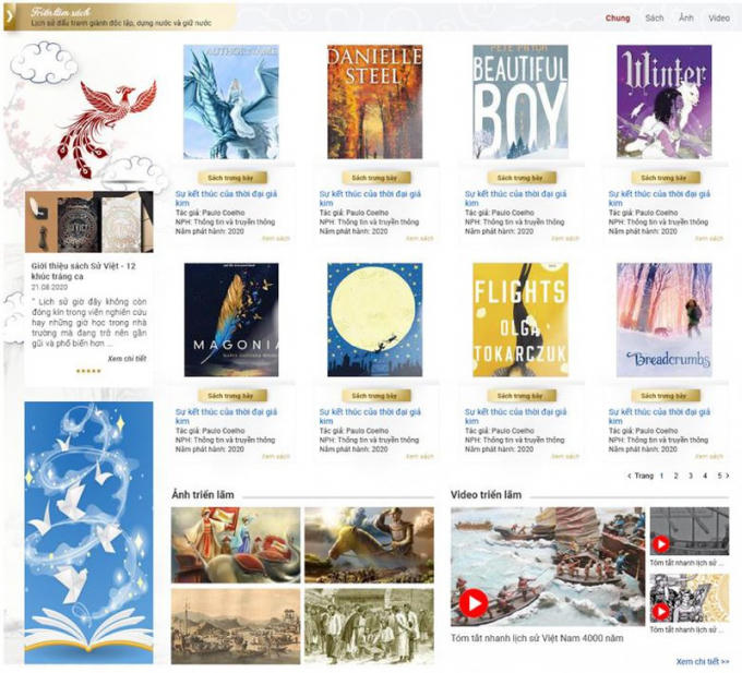 Hình ảnh demo khu vực giới thiệu sách và tư liệu lịch sử tại triển lãm.
