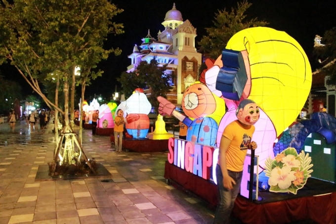 Người cá đầu sư tử là linh vật đèn lồng đại diện cho quốc đảo sư tử Singapore và cuối cùng là hai chú voi Boonchu Boonme, linh vật đến từ đất nước chùa Vàng, Thái Lan. Đặc biệt, mô hình đèn lồng trâu vàng, linh vật đại diện cho Việt Nam sẽ được trưng bày ngay cổng thành.