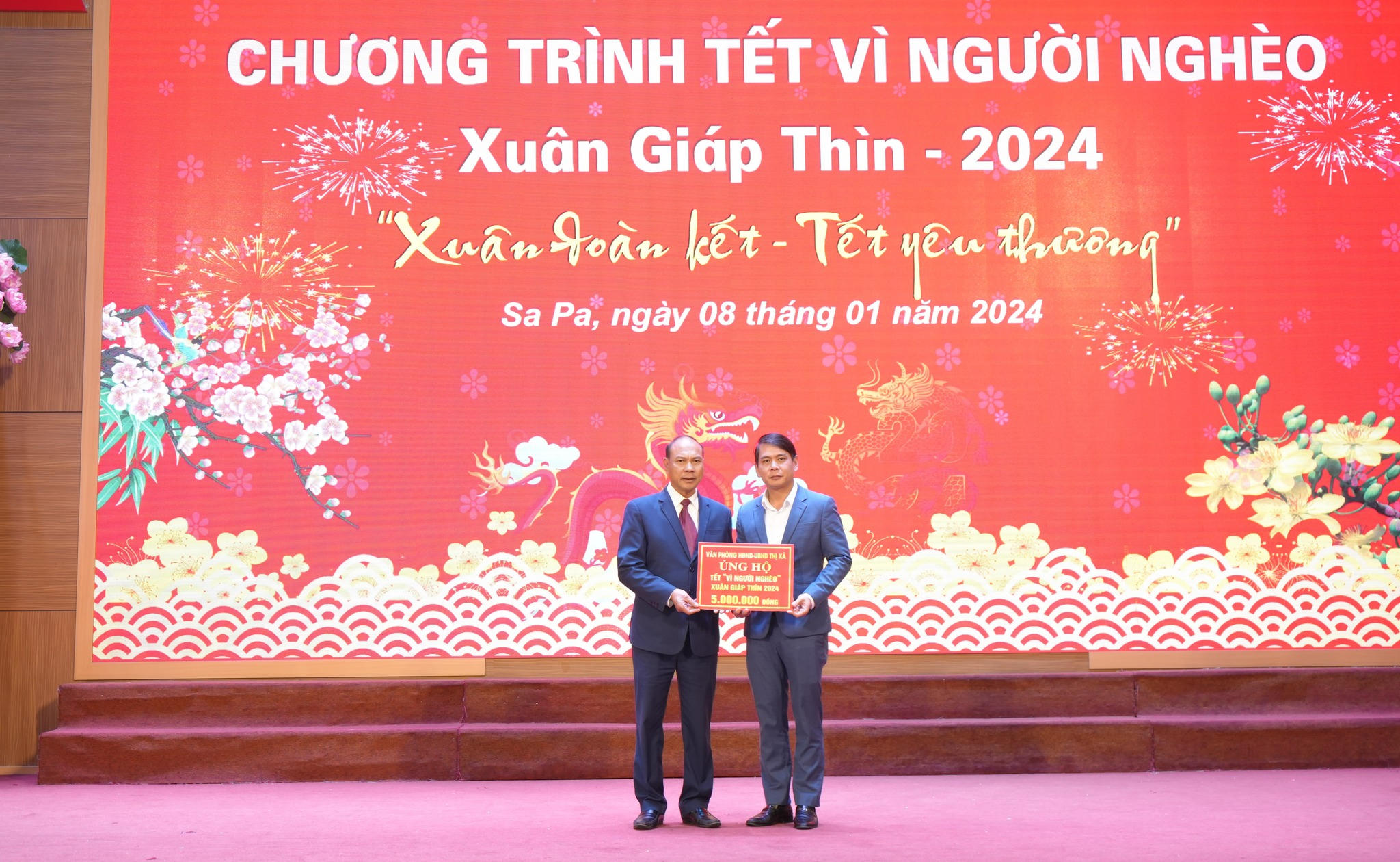 Chiều 8/1/2024, Ủy ban Mặt trận Tổ quốc Việt Nam thị xã Sa Pa tổ chức chương trình tiếp nhận ủng hộ "Tết vì người nghèo - Xuân Giáp Thìn” năm 2024.