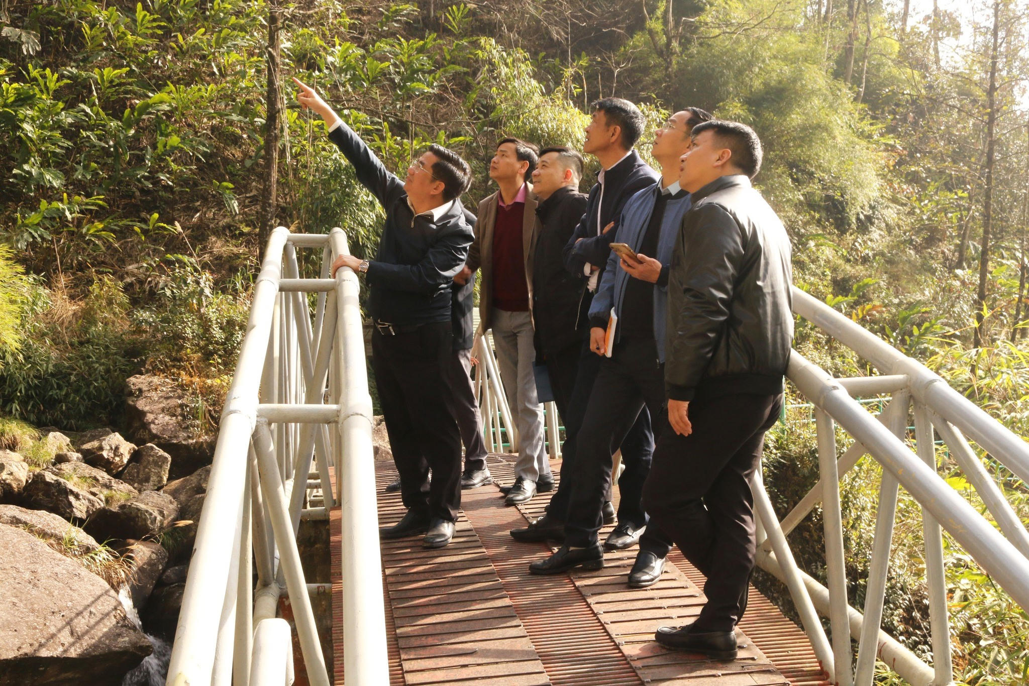 Chủ tịch UBND thị xã Sa Pa Tô Ngọc Liễn cùng đoàn kiểm tra thực địa khu du lịch Thác Bạc.