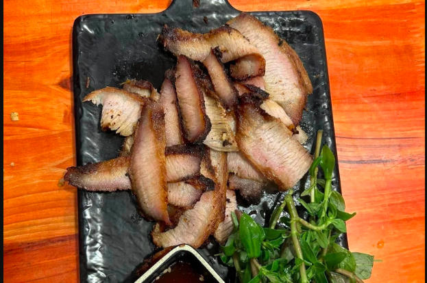 Đĩa thịt lợn có giá 495.000 đồng chị N. bị "chặt chém" tại một nhà hàng ở trung tâm thị xã Sa Pa (Lào Cai). Ảnh: PV.