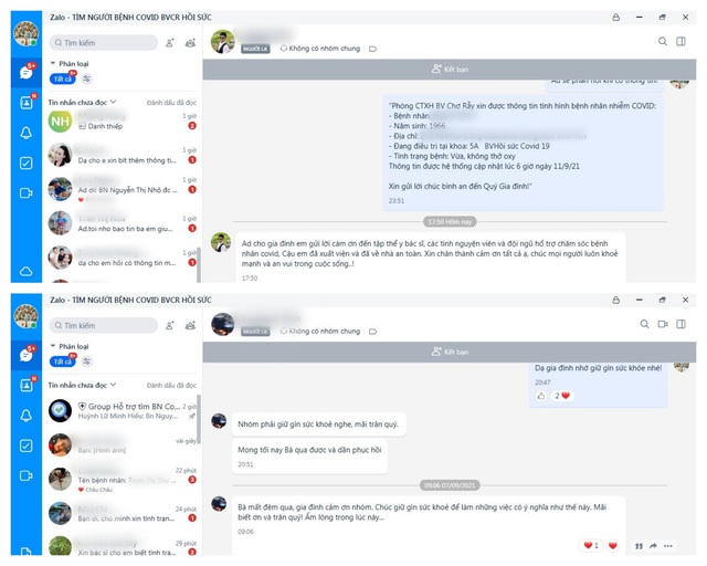 Khi số điện thoại "Tìm người bệnh COVID của Bệnh viện Chợ Rẫy, Hồi sức" được công bố qua số 0888561080 cùng fanpage Phòng Công tác xã hội Bệnh viện Chợ Rẫy, chị Huyên liên tục nhận được các tin nhắn. Người nhà cung cấp họ tên, năm sinh, địa chỉ, số điện thoại đăng ký nhận tin người bệnh, thời gian nhập viện của bệnh nhân. Từ đây, chị tra cứu thông tin, xác minh và báo lại cho họ.