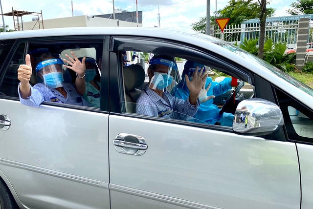 Những chuyến xe 0 đồng của Phòng Công tác Xã hội chở các bệnh nhân mắc COVID-19 về nhà đoàn tụ. Ảnh: Lê Minh Hiển