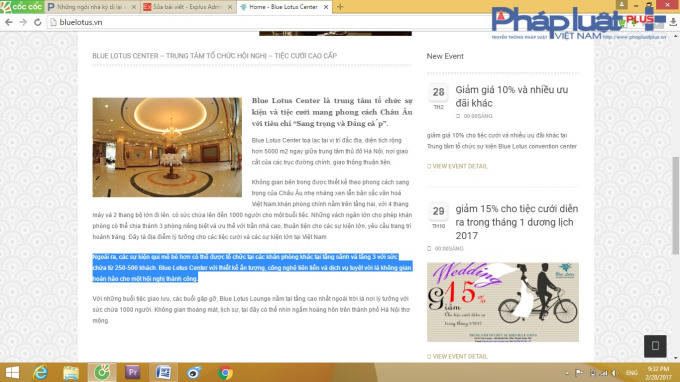 Trên 1 websize có tên miền bluelotus.vn giới thiệu về trung tâm Blue Lotus Center cũng ghi rõ: Các sự kiện qui mô bé hơn có thể được tổ chức tại các khán phòng khác tại tầng sảnh và tầng 3 với sức chứa từ 250-500 khách.