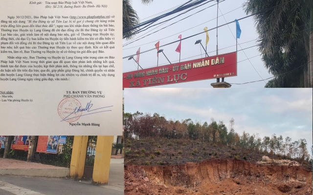 Sau khi có đơn thư tố cáo từ người dân, đến ngày 19/8/2019, UBND huyện Lạng Giang nhanh chóng ban hành Quyết định số 1238/QĐ-UBND do Phó Chủ tịch UBND Nguyễn Văn Sỹ ký ban hành về việc điều chỉnh một phần Quyết định số 646/QĐ-UBND ngày 22/5/2019 và Quyết định số 647/QĐ-UBND ngày 22/5/2019 của UBND huyện Lạng Giang.