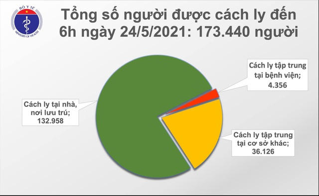 Tổng số người tiếp xúc gần và nhập cảnh từ vùng dịch đang được theo dõi sức khỏe (cách ly): 173.440, trong đó: