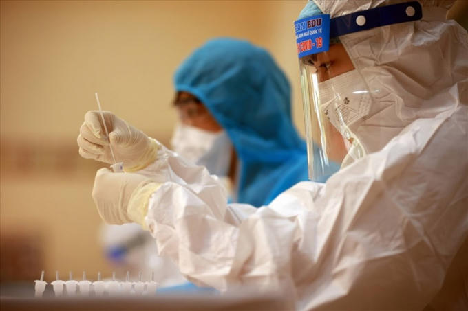 Nhân viên y tế tiến hành lấy mẫu xét nghiệm. (Ảnh: Hải Nguyễn)