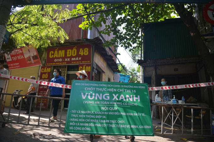 Một chốt "Vùng xanh" tại phường Mai Động, quận Hoàng Mai, TP Hà Nội.