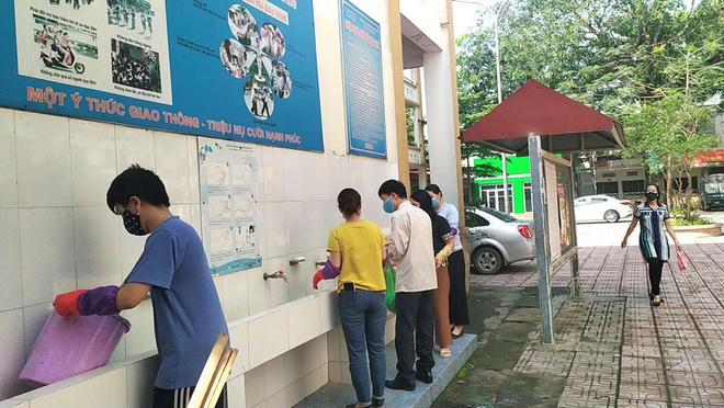 Ông Vũ Mạnh Tường, Phó Hiệu trưởng trường THCS Giảng Võ cho biết, nhà trường đã lắp đặt thêm hệ thống rửa tay ở các khu vực gồm có các chậu rửa tay ngoài trời gắn các lọ nước sát khuẩn, đánh vạch để học sinh đi vào một cách hợp lý.