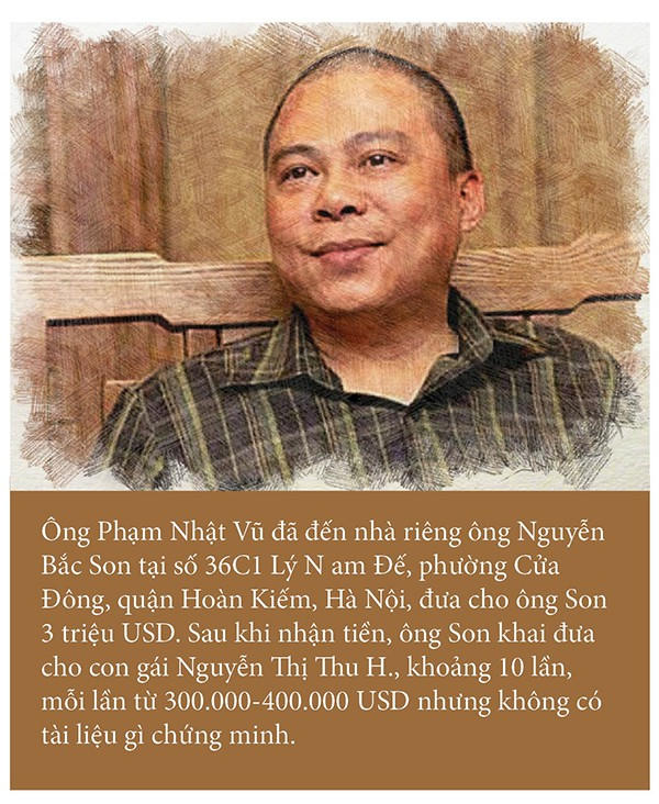 Đặc biệt, sau khi Mobifone chuyển tiền cho AVG, để cảm ơn các "lãnh đạo" Phạm Nhật Vũ đã "cảm ơn" ông Nguyễn Bắc Son 3 triệu USD (tương đương gần 66,5 tỷ đồng). Dù nhiều lần viết đơn xin nộp lại, tuy nhiên bị can Nguyễn Bắc Son không nhận được sự phối hợp của gia đình trong việc khắc phục số tiền trên mà chỉ mới sử dụng gần 600 triệu trong tài khoản ngân hàng để trả lại một phần số tiền đã chiếm đoạt.