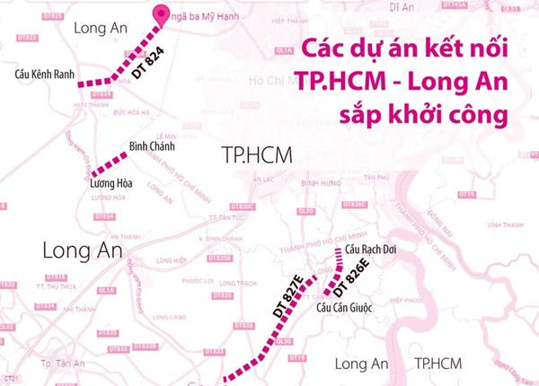 Trước đó, Sở GTVT TP và Long An đã có nhiều buổi làm việc, rà soát và đưa ra 23 vị trí kết nối đặc biệt quan trọng cần được xem xét ưu tiên đầu tư giữa hai địa phương. Trong đó có một số dự án như đường Nguyễn Văn Bứa (huyện Hóc Môn) kết nối với ĐT824 (huyện Đức Hòa), dự án quốc lộ 50 qua Bình Chánh - Cần Giuộc, dự án đường Long Hậu (huyện Nhà Bè) - ĐT826E (huyện Cần Giuộc), đường Lê Văn Lương (huyện Nhà Bè) - ĐT826C (huyện Cần Giuộc)…
