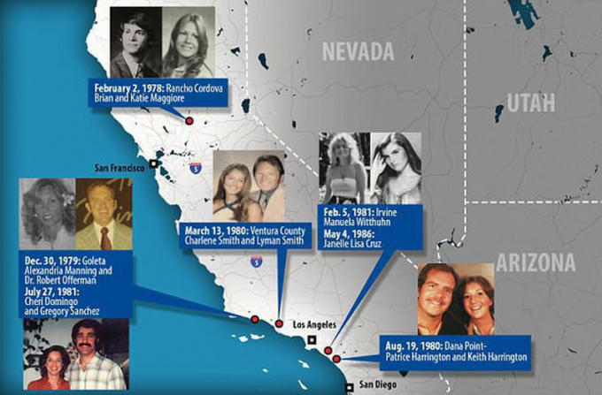 Joseph DeAngelo Jr. đã đột nhập 120 ngôi nhà, tấn công tình dục khoảng 60 phụ nữ, sát hại 13 người trong hơn một thập kỷ từ giữa những năm 1970 đến giữa những năm 1980 ở khu vực California (Mỹ)
