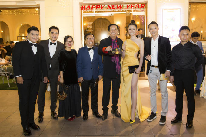 Tối 12/1, lễ trao giải 'Mai Vàng' diễn ra tại TP HCM. Diễn viên Thúy Ngân diện trang phục màu vàng rực rỡ, tôn nước da trắng ngần. Bộ váy có những chi tiết cắt xẻ táo báo giúp cô khoe khéo lợi thế hình thể. Trên thảm đỏ, cô tình tứ khoác tay đàn anh - diễn viên Trung Dũng và rạng rỡ chụp hình kỷ niệm.