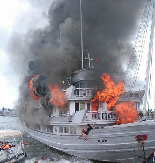 Cận cảnh du thuyền hạng sang bốc cháy ngùn ngụt ở Hạ Long