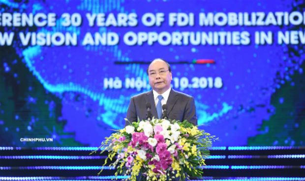 Thủ tướng Nguyễn Xuân Phúc cho biết, thực tiễn 30 năm qua cho thấy, việc mở cửa thu hút vốn ĐTNN là một chủ trương đúng đắn, đã góp phần thực hiện nhiều mục tiêu phát triển kinh tế-xã hội quan trọng của đất nước.