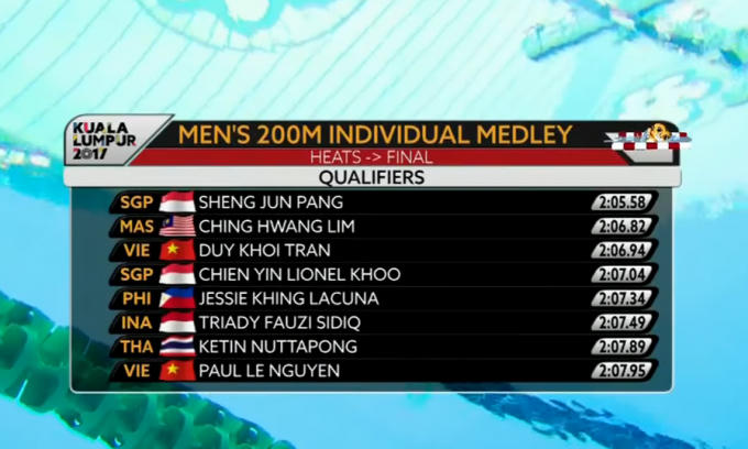 Duy Khôi và Le Paul vào chung kết 200m hỗn hợp nam