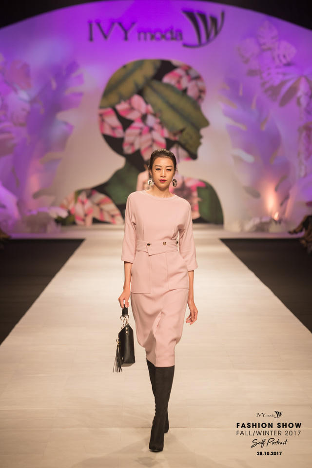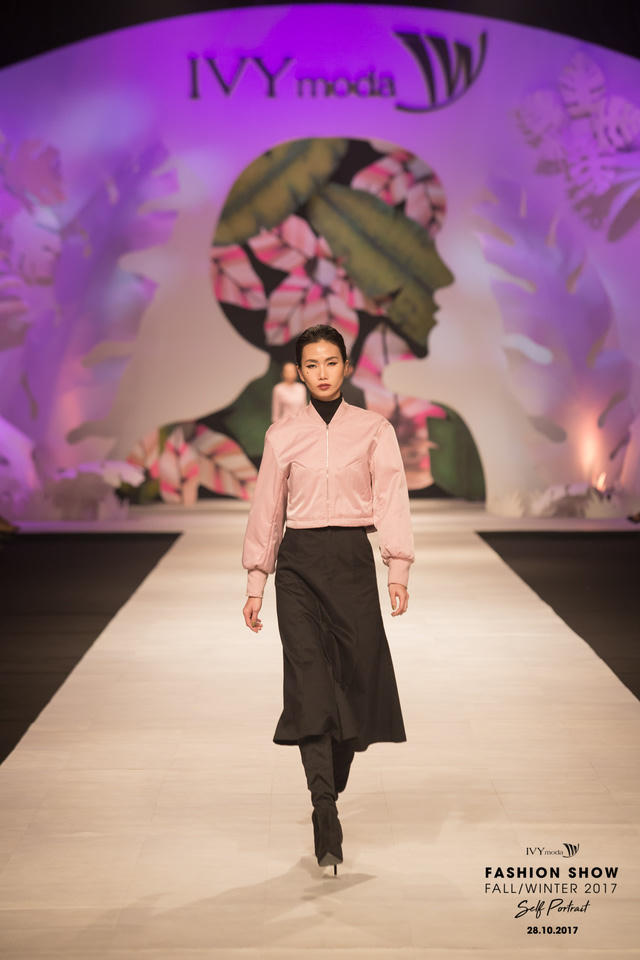 Đúng với ý nghĩa mà màu hồng ballet mang lại – điểm nhấn về màu sắc đặc biệt được IVY ưu ái trong show diễn lần này, các nàng thơ của hãng sẽ trở nên dịu ngọt như mùa thu Hà Nội, lãng mạn và đậm chất thơ trong các thiết kế áo vest dáng dài, váy, hay áo nỉ có in hình hoạ tiết đặc biệt chủ điểm của show diễn: bức chân dung tự hoạ của cô gái.