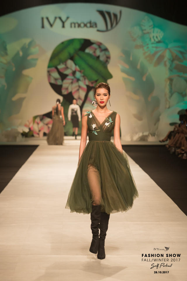 Chọn những chiếc váy dạ hội để đưa lên đầu cho xu hướng Thu – Đông 2017 quả rất xứng! Bởi lẽ, cuối năm là mùa của những buổi tiệc tùng, của những vũ hội, nắm bắt được tâm lý muốn mình trở thành Cinderella của những buổi tiệc, IVY đã đem đến những mẫu váy dạ hội vô cùng đẹp mắt, thướt tha, bay bổng trong chất liệu ren, voan và oganza với màu xanh olive, hồng ballet và đen, trắng, tạo ra những vũ khúc vô cùng tinh tế và lạ mắt.