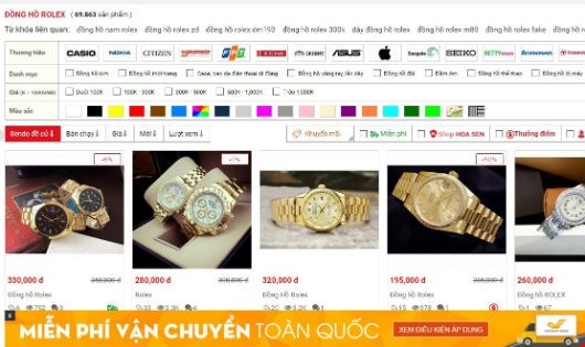 Tìm kiếm bằng cụm từ “đồng hồ Rolex”, sàn thương mại Sendo.vn cho kết quả là 69.863 sản phẩm. Giá bán mỗi chiếc đồng hồ từ vài trăm ngàn đồng đến hơn một triệu đồng.