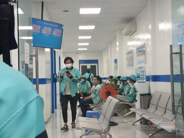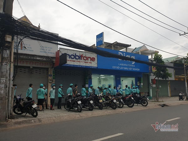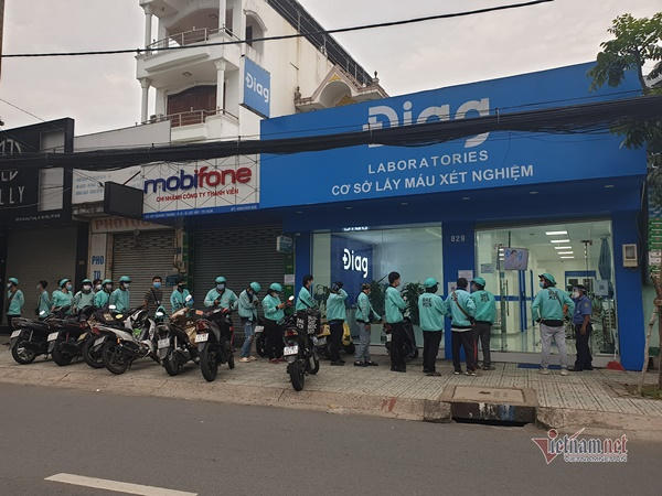 Đến này, dù doanh nghiệp tự đứng ra tổ chức xét nghiệm nhưng tình trạng shipper vẫn xếp hàng dài.