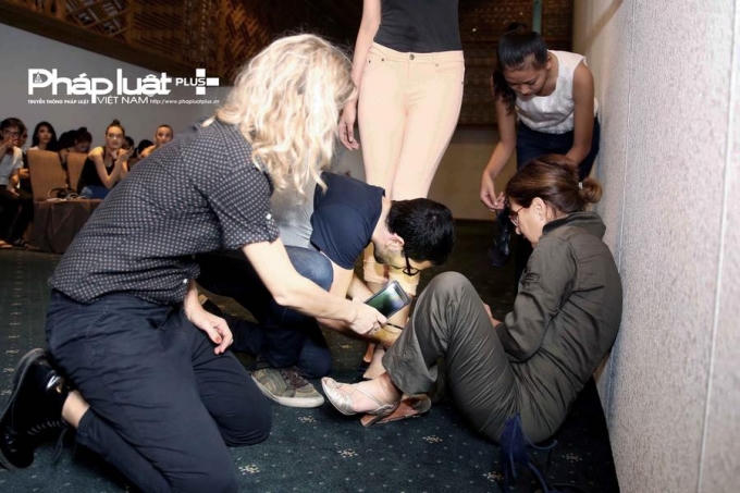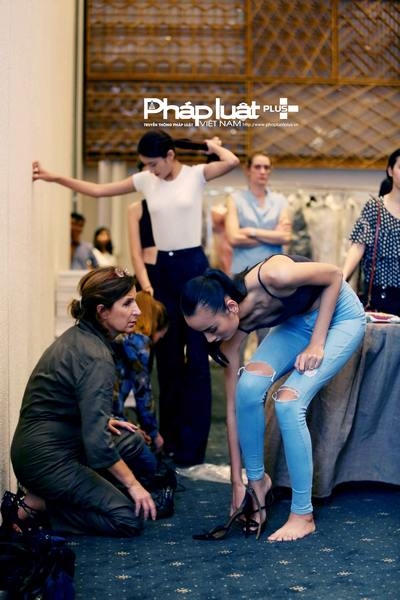 Alexis Mabille chăm chú theo dõi từng bước chân của người mẫu để có những chọn lựa chính xác nhất cho bộ sưu tập của mình. Ông cũng trực tiếp ngồi xuống sàn để thử giày cho người mẫu. Toàn bộ giày tập được Nhà thiét kế vận chuyển từ Pháp sang.