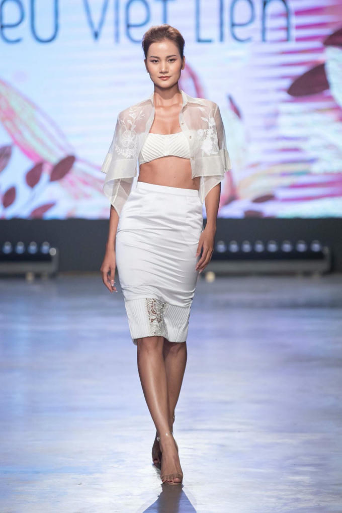 Màu trắng, vải thô cũng chính là màu và chất liệu chủ đạo xuyên suốt bộ sưu tập. Những chiếc bralette với chất liệu vải cắt lazer hay những chiếc crop top sheer lấp ló những đường nét hoàn hảo trên cơ thể của người con gái.