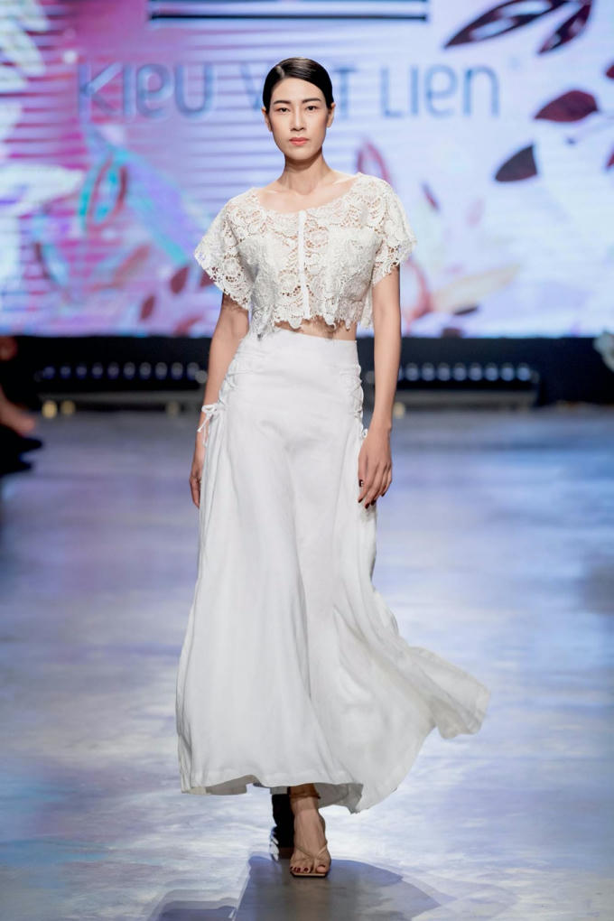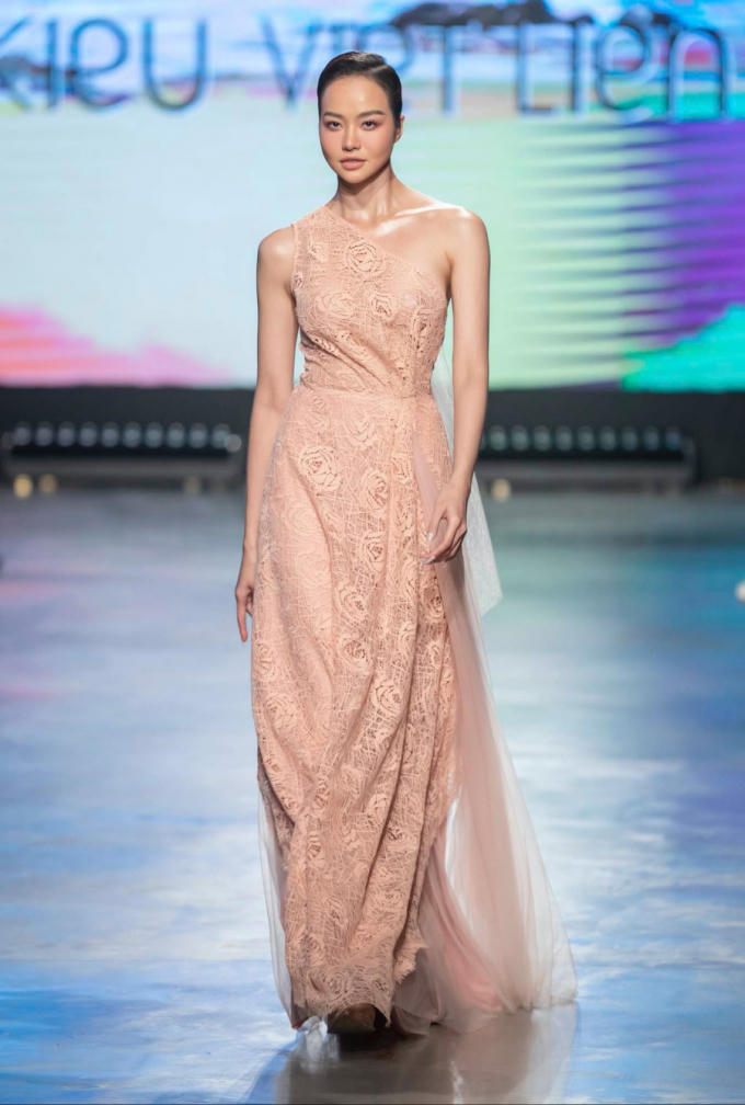 Siêu mẫu 8X và Á hậu Thúy Vân diện trang phục đối lập trong show diễn của NTK Kiều Việt Liên.