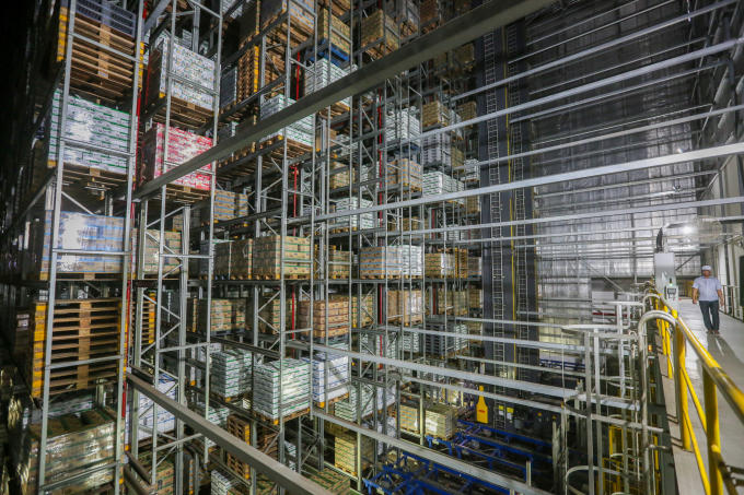 Một góc của Kho thông minh tại nhà máy Mega, được thiết kế và xây dựng bởi công ty Schafer của Đức, vận hành hoàn toàn tự động