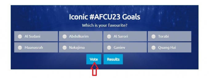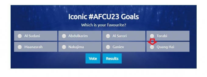 Sau khi nhấn chọn tại ô của Quang Hai, bạn thực hiện bước cuối cùng đó là nhấn vào ô Vote và đợi trong giây lát khi bảng được chuyển sang lượng bình chọn cầu thủ nào đang chiếm ưu thế vậy là đã hoàn thành xong thao tác bình chọn cho Quang Hải.
