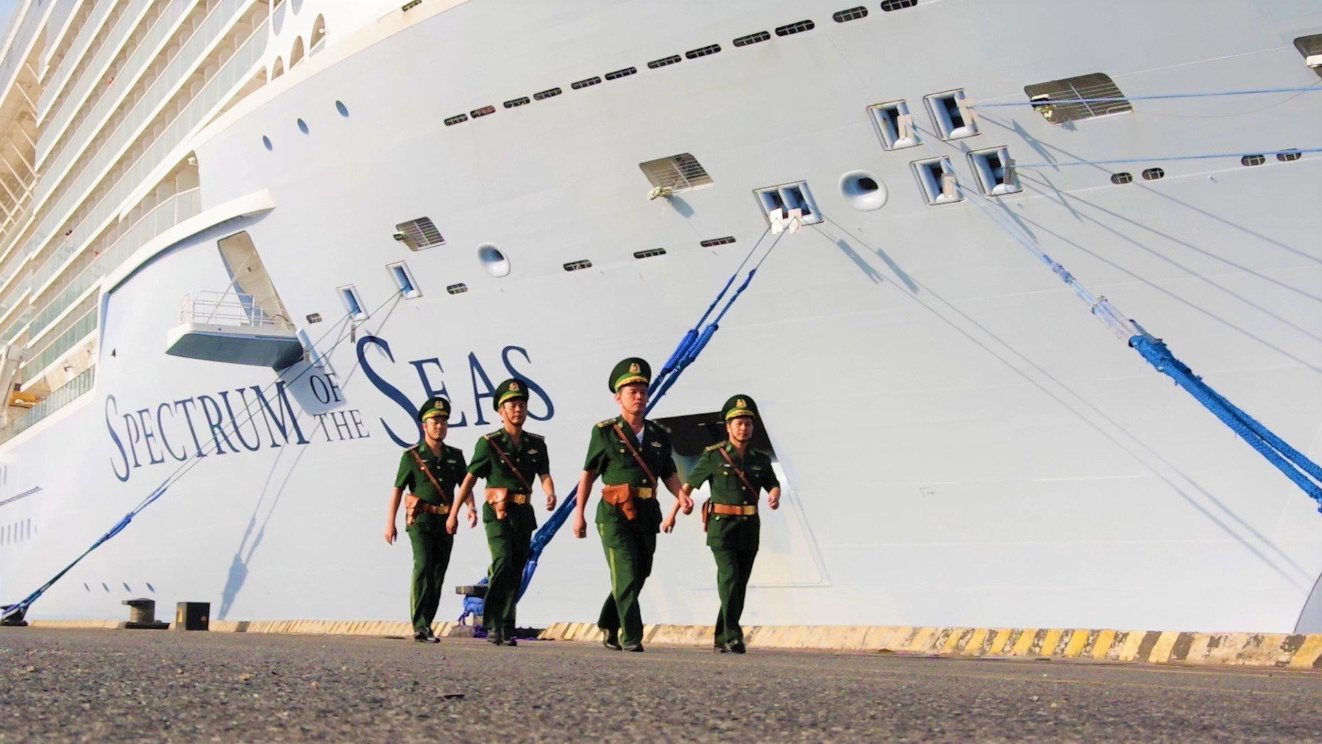 Lực lượng Biên phòng Cửa khẩu Cảng Bà Rịa - Vũng Tàu tuần tra đảm bảo an ninh trật tự khu vực tàu Spectrum of the Seas cập cảng Tân Cảng - Cái Mép (TCCT).