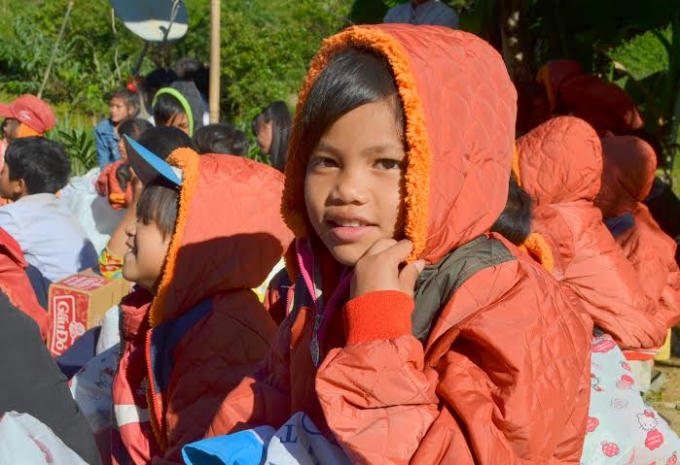 Đón nhận áo mới, Hồ Văn Đồi (học sinh lớp 6/1) cười rất hạnh phúc “Áo vừa lắm, giờ em không bị lạnh nữa rồi”.