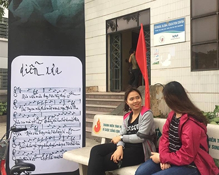 | Trước giờ G điểm đêm nhạc thiện nguyện của ca sĩ Khánh Ly, nhiều sinh viên đang theo học tại ĐH Văn Hóa bày tỏ cảm xúc với “Đời cho ta thế”. Ảnh: Nguyễn Bảo. |